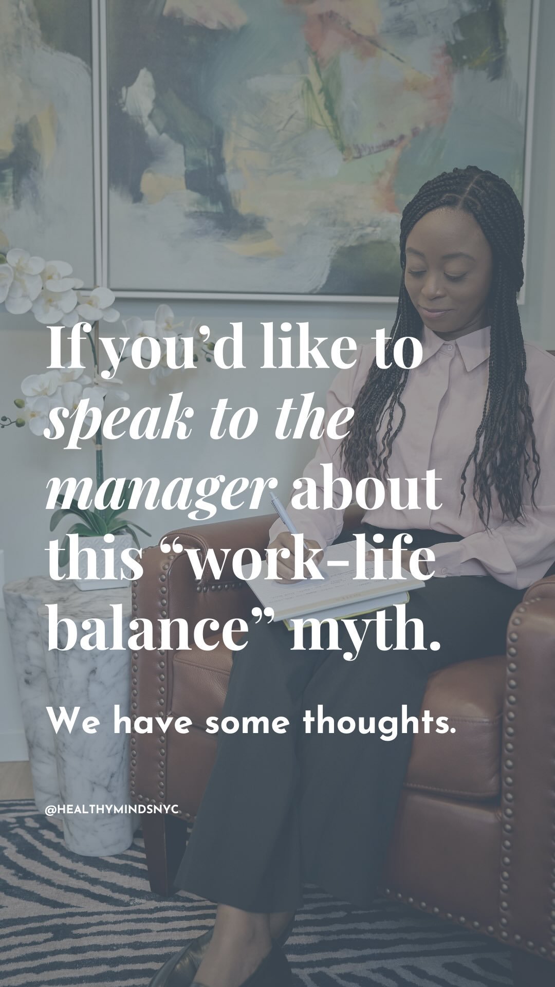 At Healthy Minds NYC, we believe the right therapist is essential to your mental health journey. That's why we require all clients to start with a free 15-minute consultation call. Our experienced team will take the time to understand your unique needs and match you with a therapist who can help you achieve your goals. Don't wait to prioritize your mental health - schedule your consultation call today.